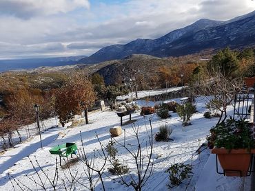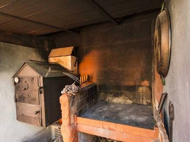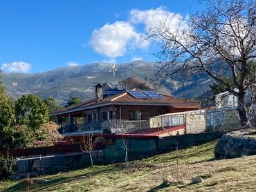There is also a fully equipped kitchen (which is availble for guests to use) and a large combined living/dining room with a woodstove that keeps all premises at a comfortable temperature in winter. The whole house runs on self-produced solar and wind power, and the water is taken from a mountain spring located inside the property.